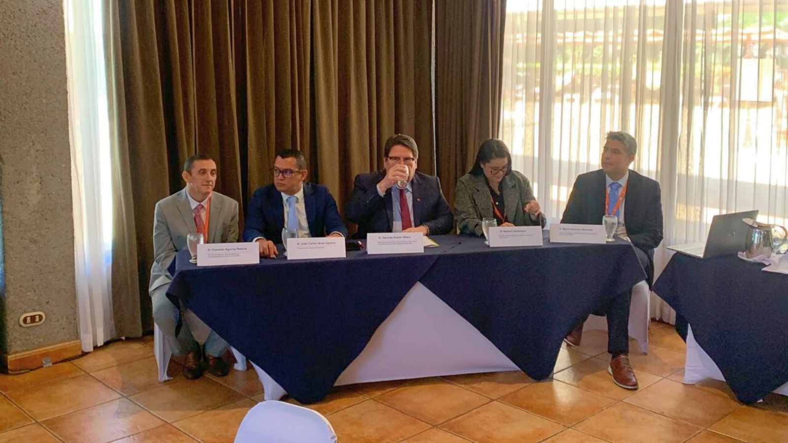 En la imagen, de izquierda a derecha, D. Oswaldo Aguirre Retana, Director del Instituto sobre Alcoholismo y Farmacodependencia (IAFA) de Costa Rica; D. Juan Carlos Arias Agüero, Viceministro de Justicia de Costa Rica; D. Gerardo Rubén Alfaro Vargas, Magistrado Rector de la Justicia Restaurativa del Poder Judicial de Costa Rica; Dª Heldren Solórzano Manzanares, Directora General Adjunta del Instituto Costarricense sobre Drogas (ICD); D. Mario Germán Sánchez González, Director Ejecutivo de Tirant eGob.