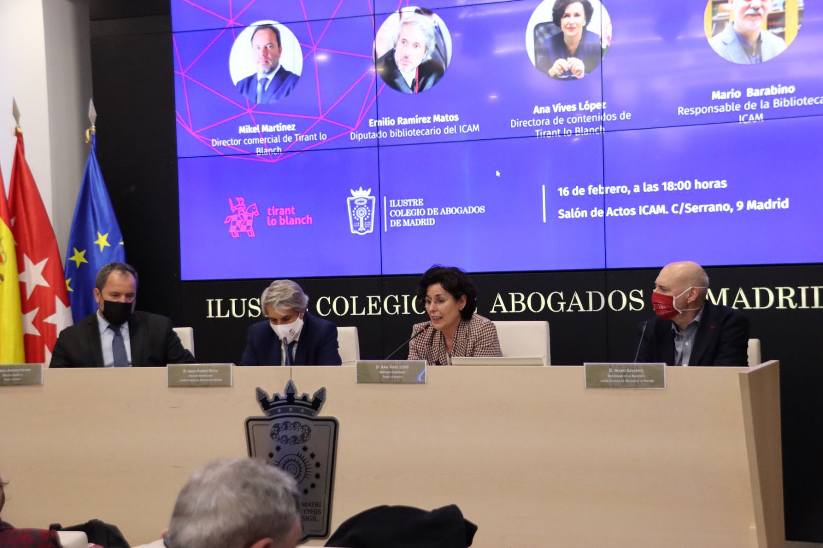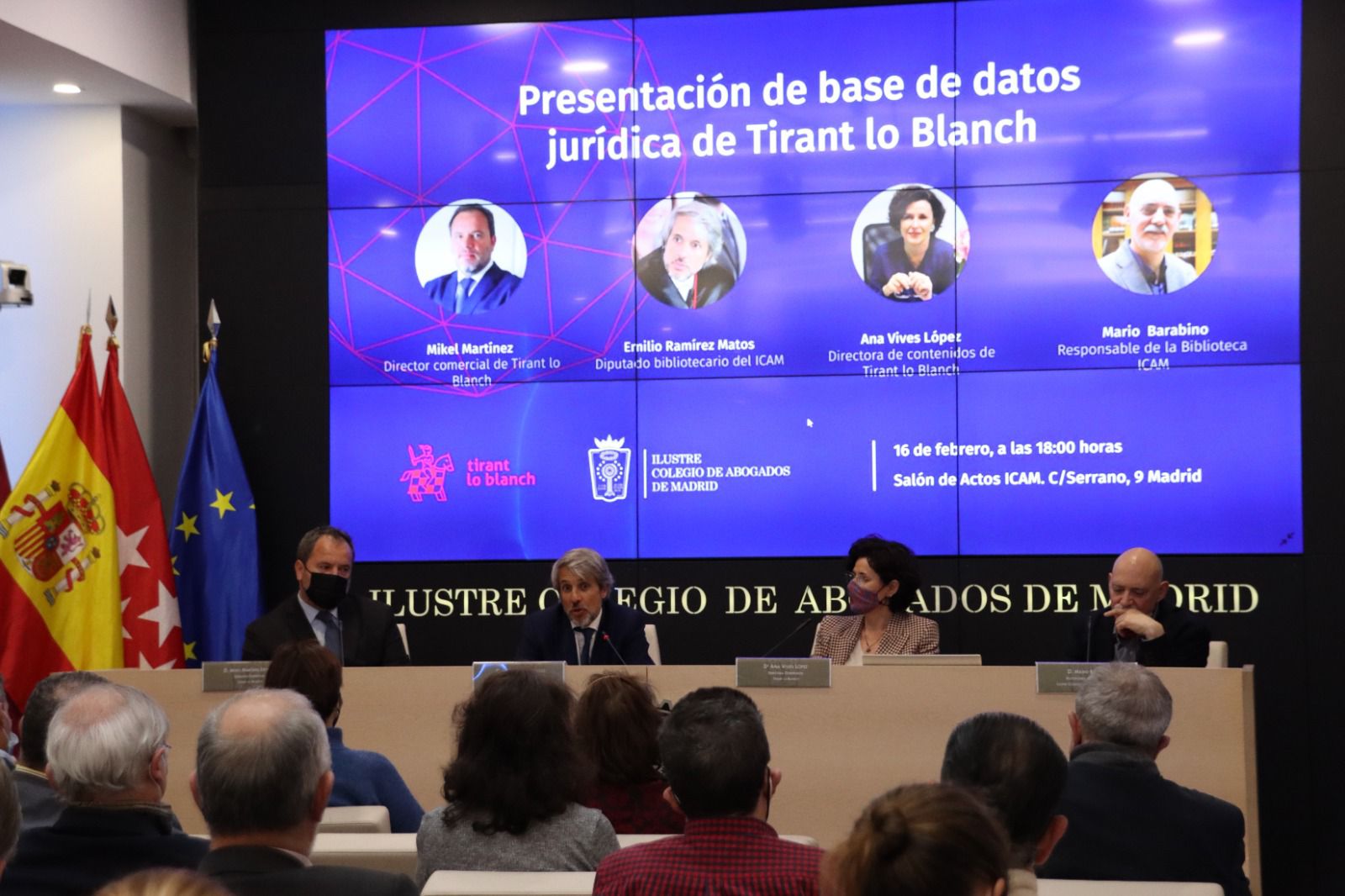 En el marco de la renovación del acuerdo entre ICAM y Tirant Lo Blanch, para ofrecer a los colegiados el acceso a nuestra Base de Datos Jurídica de manera gratuita, se lleva a cabo presentación en la que se explica el funcionamiento y beneficios que ofrece Tirant Analytics y SOFIA. En esta oportunidad en representación de la editorial participan Ana Vives – Directora de Contenidos y del Área de Innovación y Desarrollo y Mikel Martínez – Director Comercial y de Gran Cuenta, también intervienen Emilio Ramírez Matos – Diputado Bibliotecario de ICAM y Mario Barbino – responsable de la Biblioteca del Colegio.