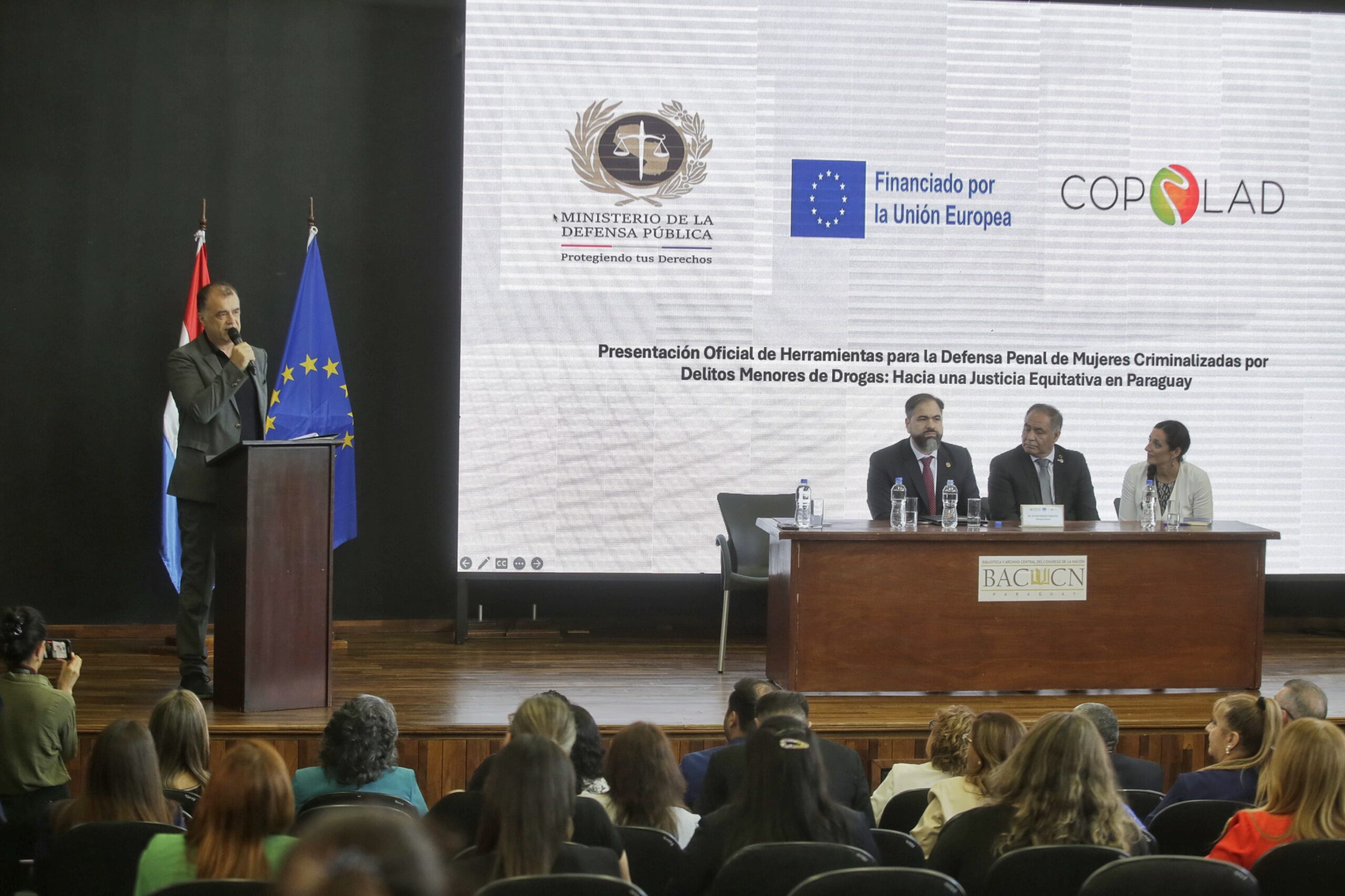 Hoy se ha celebrado en el Salón Auditorio Biblioteca del Congreso Nacional un evento clave para la justicia penal en Paraguay, con la presentación de herramientas fundamentales diseñadas para fortalecer la defensa penal de mujeres criminalizadas por delitos menores de drogas. Este encuentro, realizado en el marco del Programa COPOLAD III de la Unión Europea, contó con la presencia de autoridades nacionales, operadores de justicia y especialistas del ámbito penitenciario.